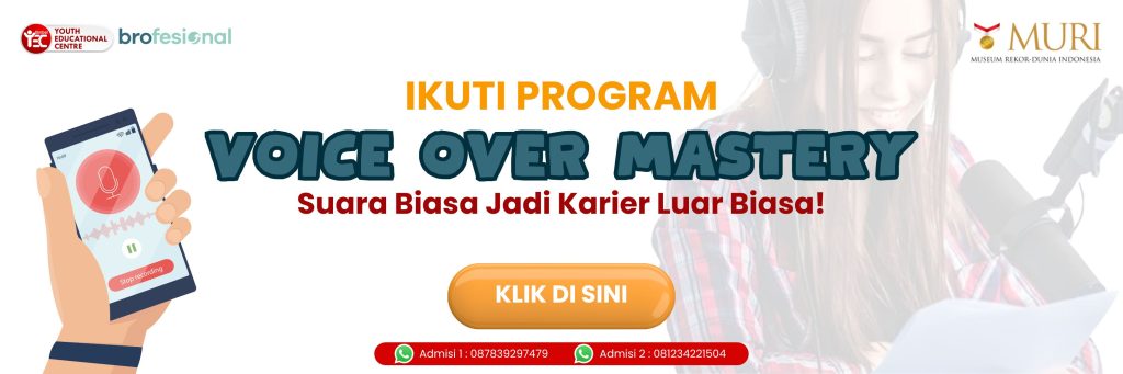 Voice Over (VO) adalah seni berbicara di balik layar. Dalam dunia ini, kamu bukan tampil dengan wajah, tapi dengan suara. Kamu mungkin nggak sadar, tapi setiap hari kamu mendengar hasil kerja para voice over talent—mulai dari iklan YouTube, narasi TikTok edukatif, video company profile, sampai suara di game dan animasi.